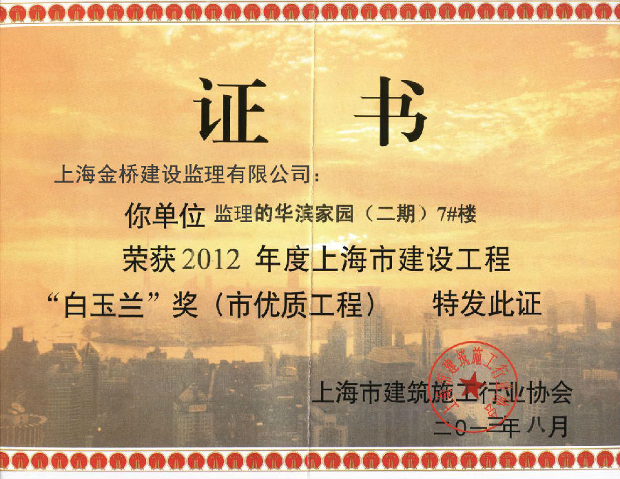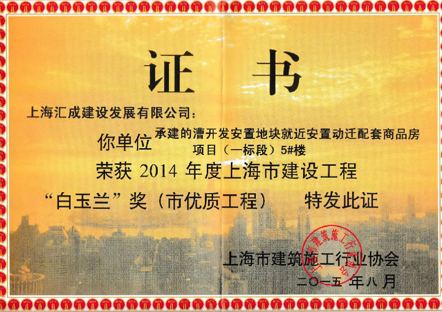 2019年度上海市建设工程“白玉兰”奖(市优质工程)
