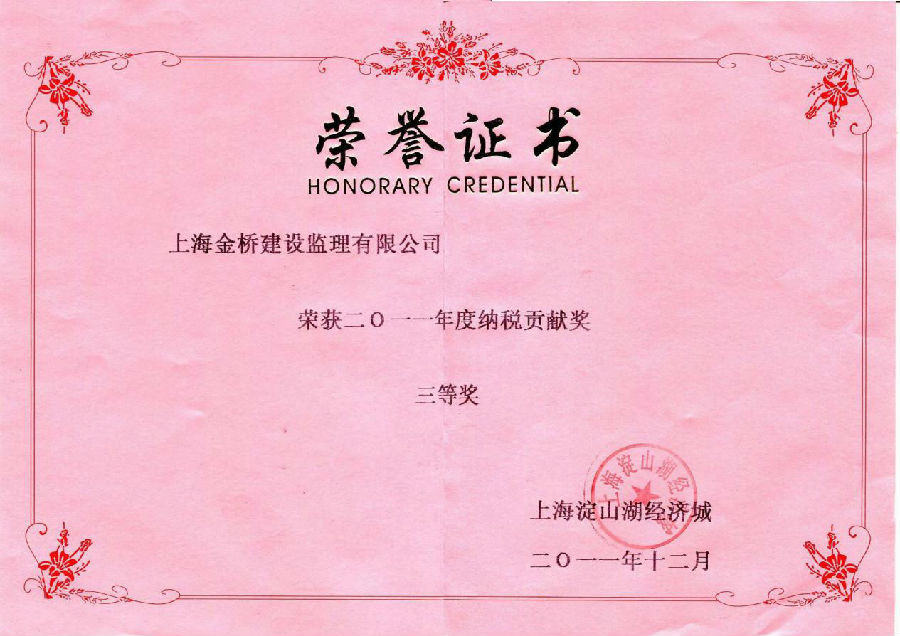 2011年度纳税贡献三等奖