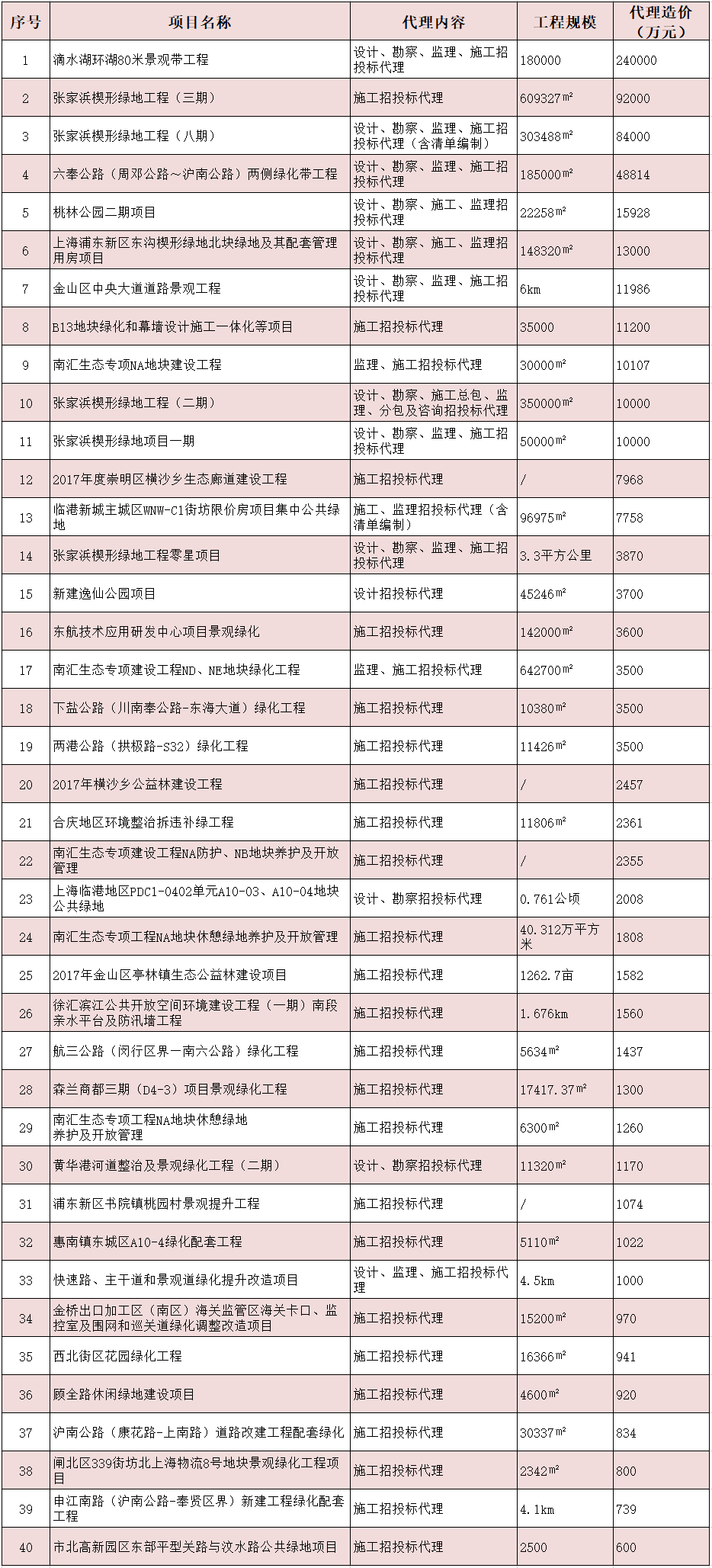 部分园林景观工程招标代理业绩一览表