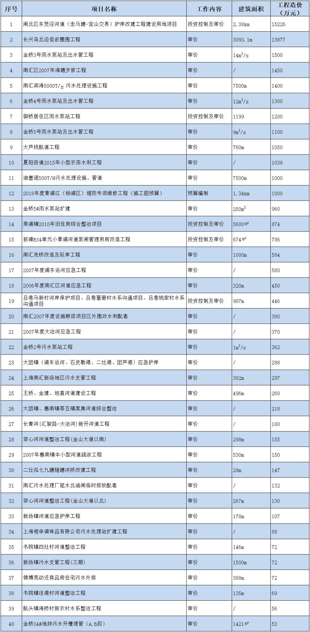 部分水利工程造价咨询业绩一览表
