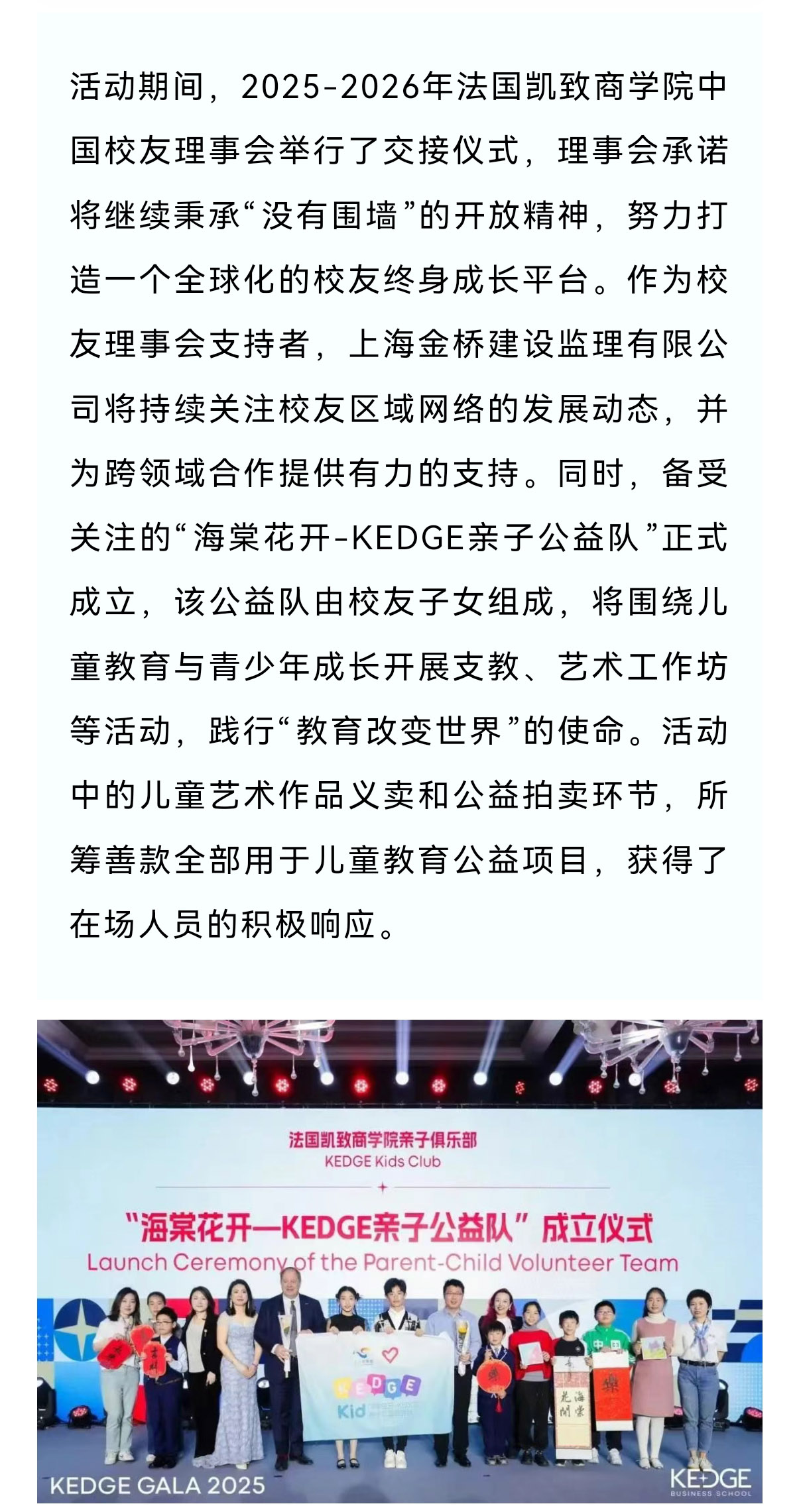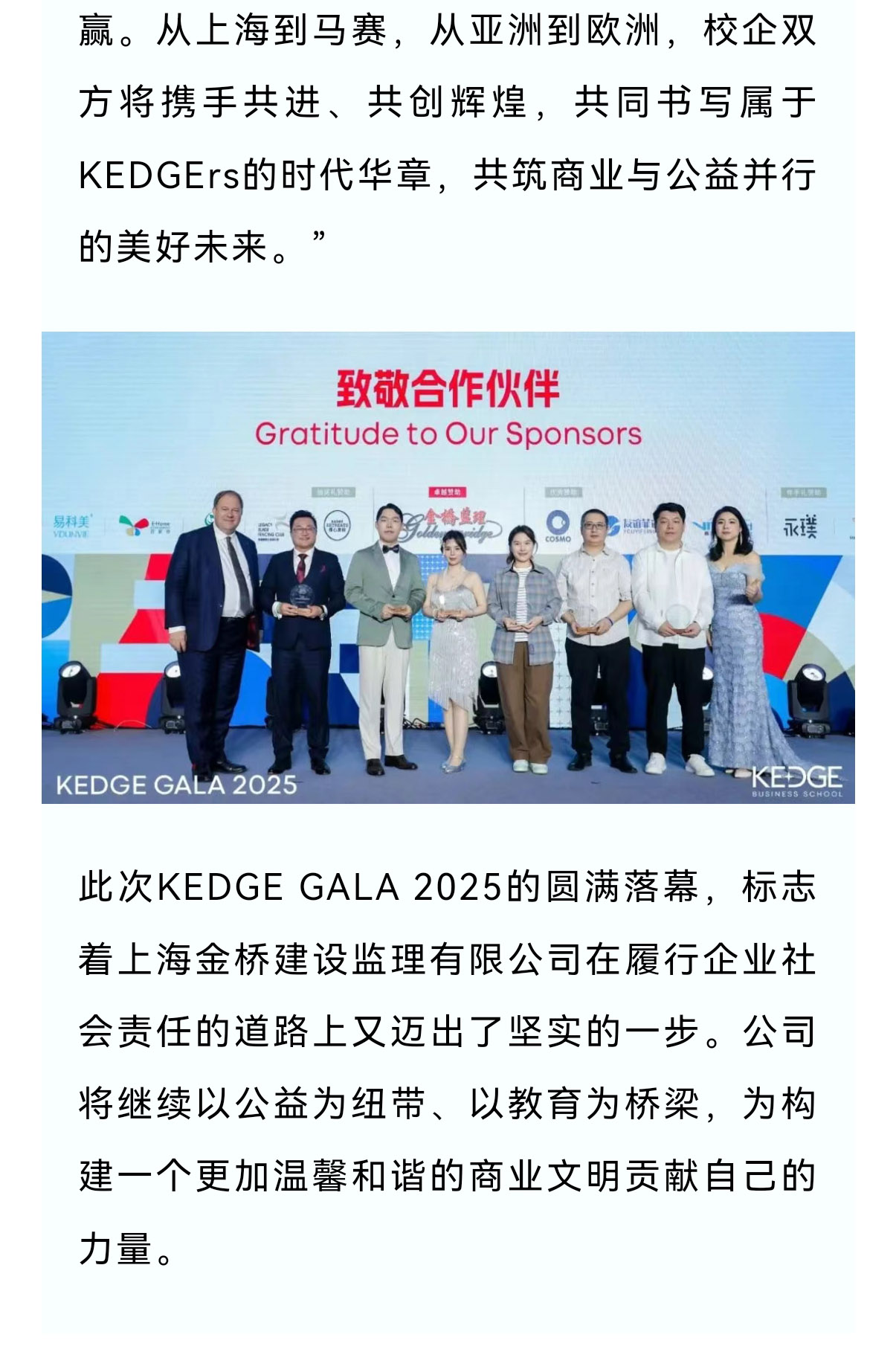 上海金桥建设监理助力法国凯致商学院公益盛典—KEDGE GALA 2025圆满落幕