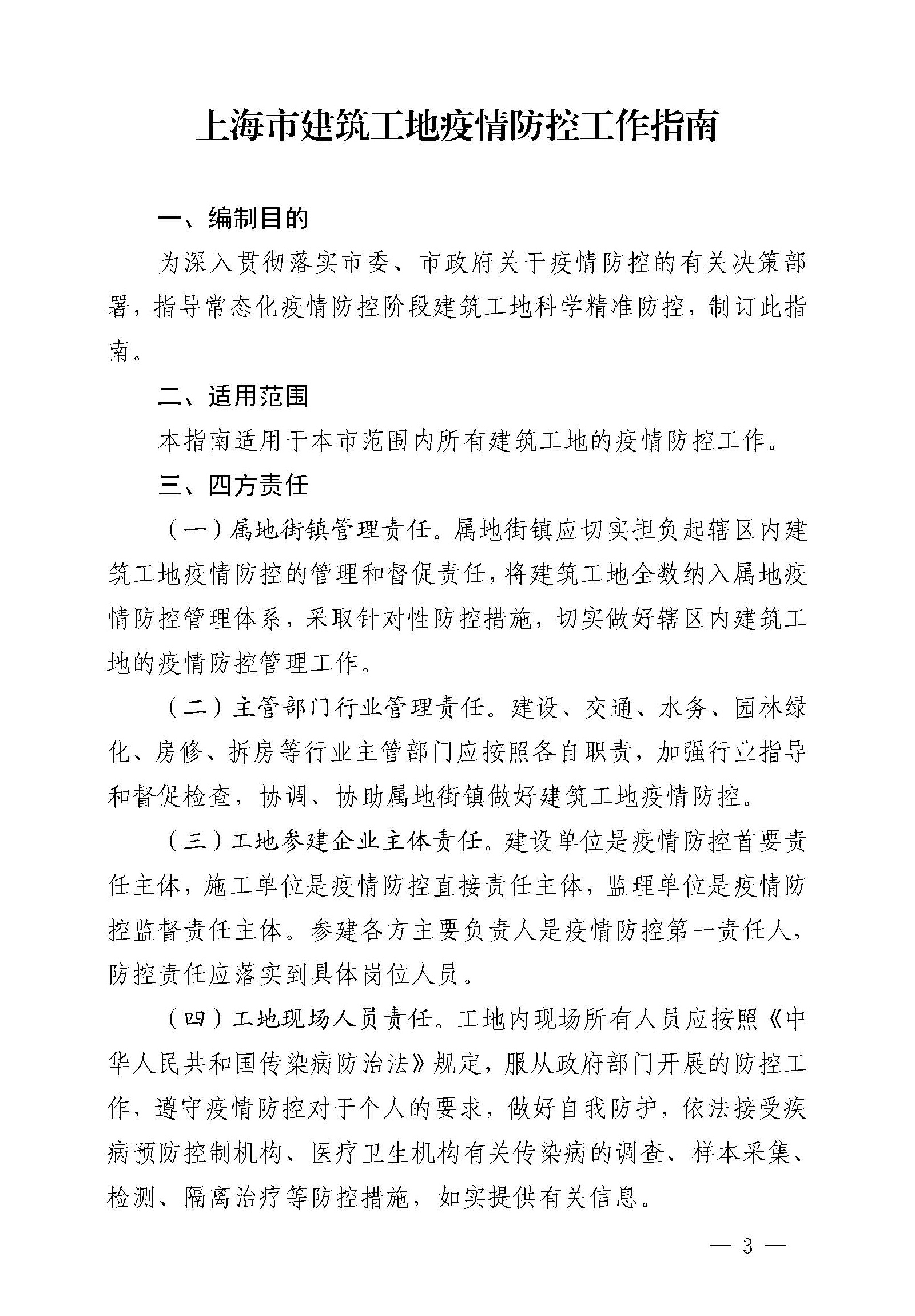 关于印发《上海市建筑工地疫情防控工作指南》的通知